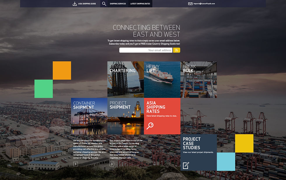​This website aims to take a soft sell approach to promote Tuscor Lloyds' logistics services between Europe and Asia. By offering useful features, including country trade guide, newsletter and weekly updated project stories, this website attempts to grow the mailing list subscribers and leverage web traffic of Tuscor Lloyds organically.